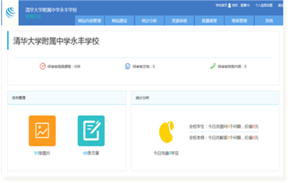為清華附中永豐學校打造的智慧校園平臺,通過直播課堂為本校及聯盟校的學生提供優質的課程,為中華英才30余合作項目縣的各學校提供優質的資源。