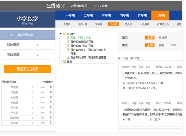 教師可按知識點、題型、難易程度等直接找到需要的題目,進行組卷和發布作業。